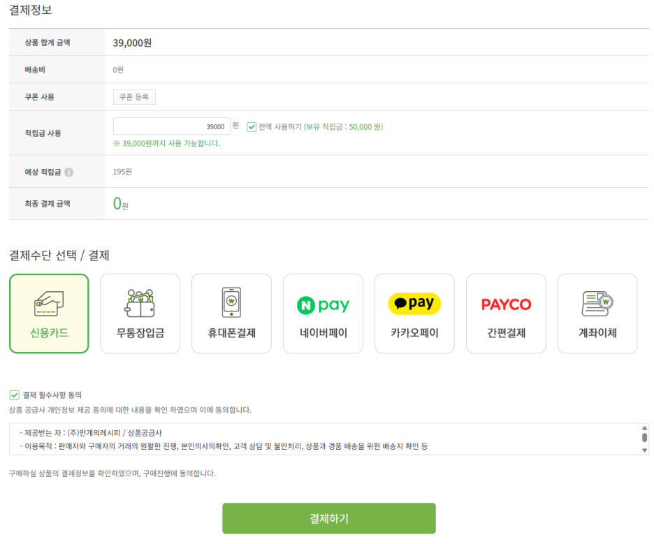 지난번에 만개의레시피 공모전에 당선되어서 5만원 적립금을 받게되었습니다.