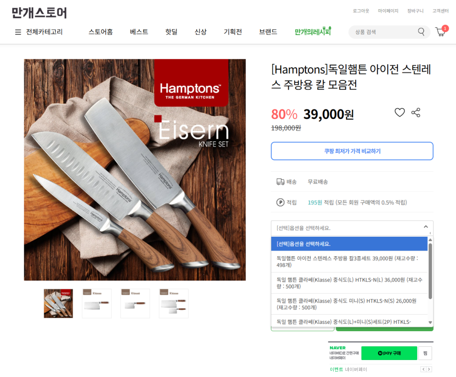 그래서 사용기한이 1년이라 많이 남았지만 그래도 그냥 생각났을때 칼이나 한번 사볼까 싶어서 칼을 둘러보다 적당한 칼을 발견했습니다.
