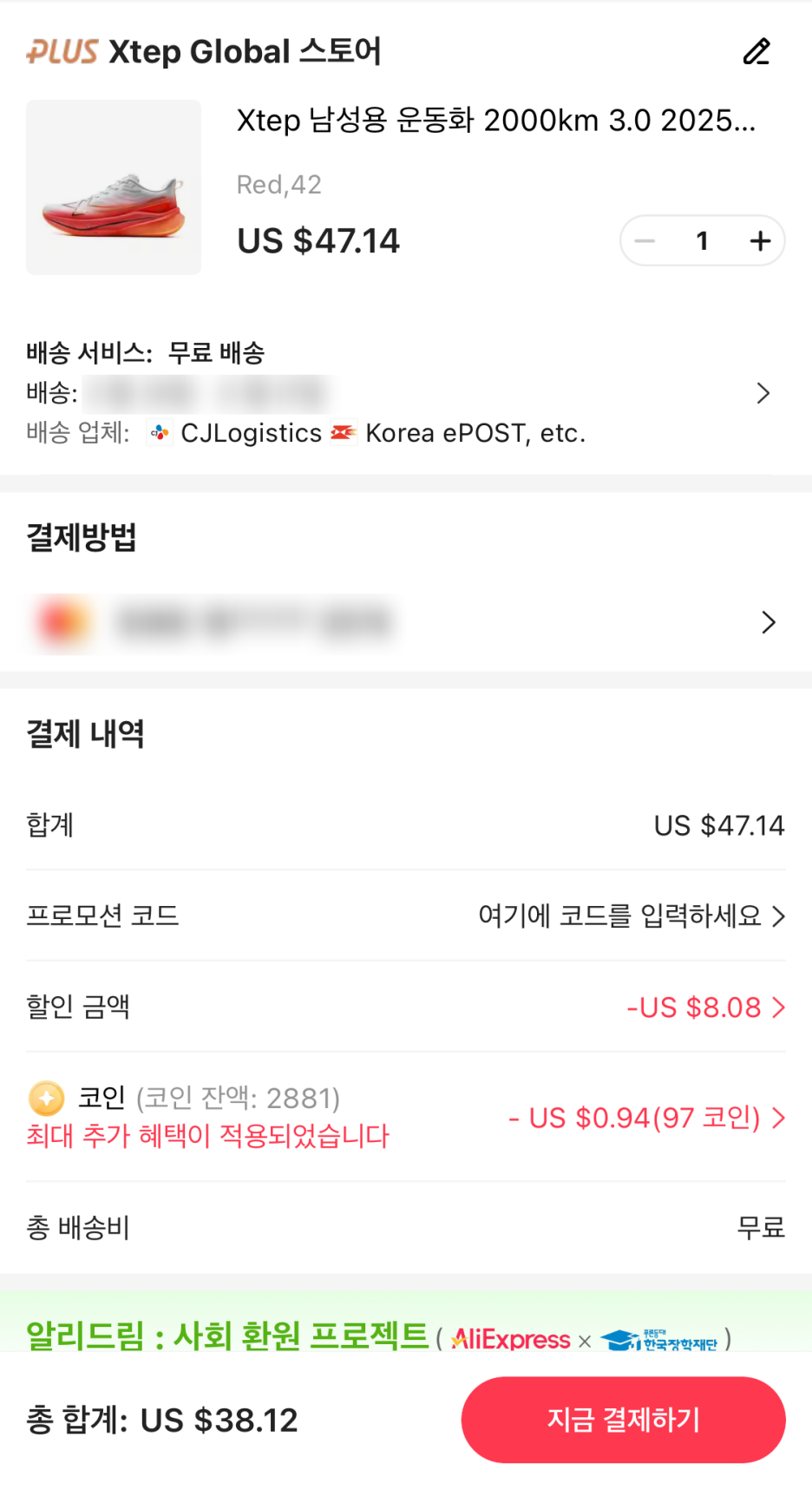 Xtep 2000km 3.0 을 38$에 구매하였습니다 (더싸게도 가능할꺼같지만요...)