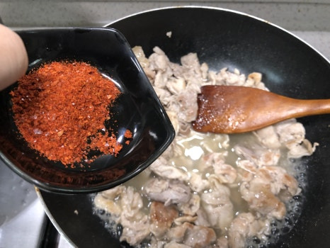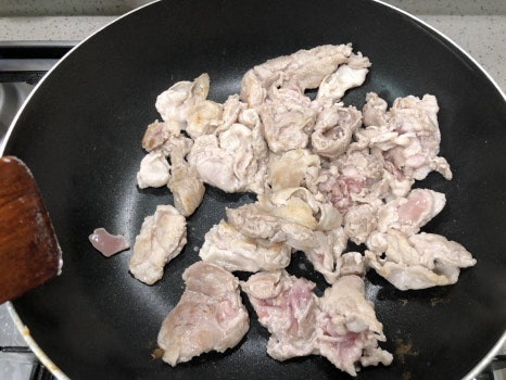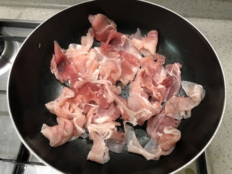 팬에 뒷다리살을 넣고 익혀줍니다.