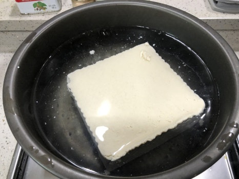 소금을 물을 끓여주다가 물이 팔팔 끓으면 두부를 넣어줍니다.