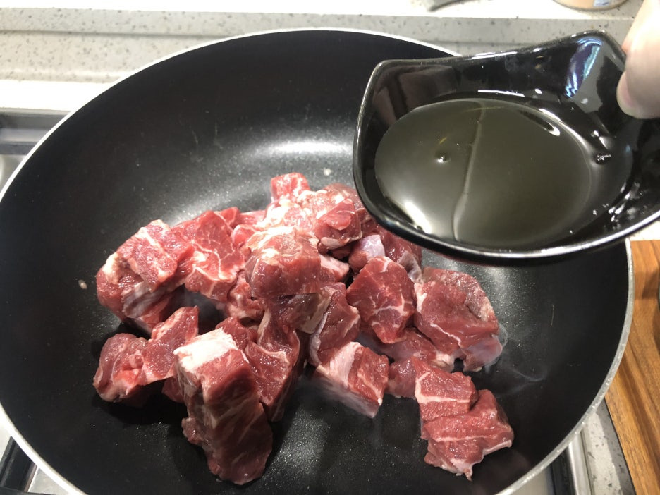 먼저 소고기를 참기름에 볶아줍니다.