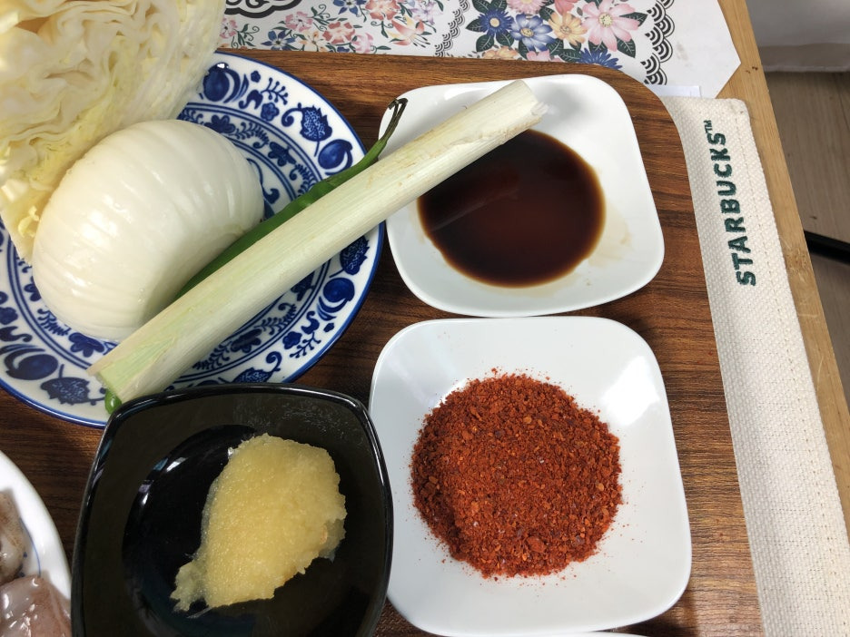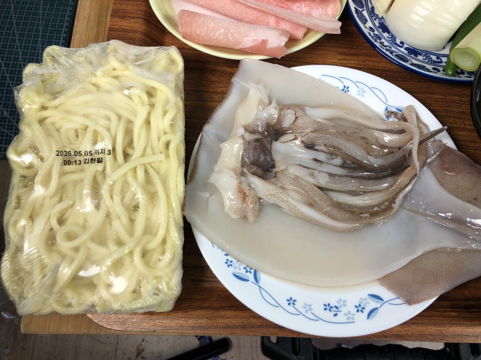 그럼 먼저 야채와 오징어를 손질하겠습니다.